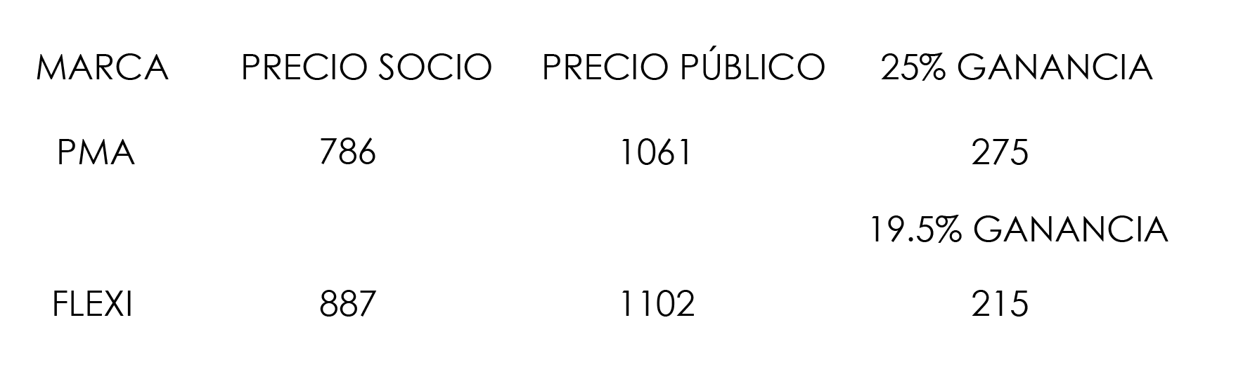 Nuestros socios tienen una ganancia de entre el 19% y el 25% sobre el precio de socio, el total resultando en el Precio de venta al público.